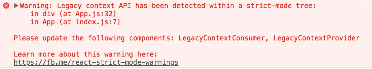 Die ältere Context-API ist fehleranfällig und wird in einer zukünftigen Hauptversion entfernt. Sie funktioniert weiterhin für alle 16.x-Versionen, zeigt jedoch diese Warnmeldung im strikten Modus an:
